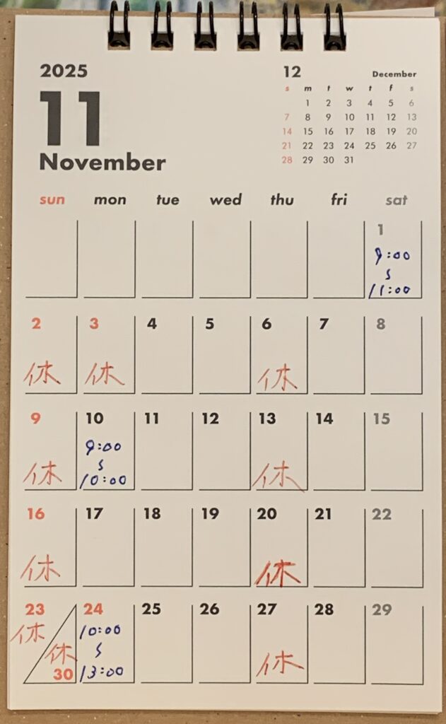 2025年月11月の診療のお知らせです。