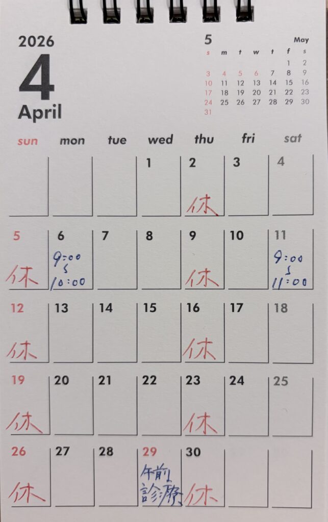 4月の『診療のお知らせ』です。